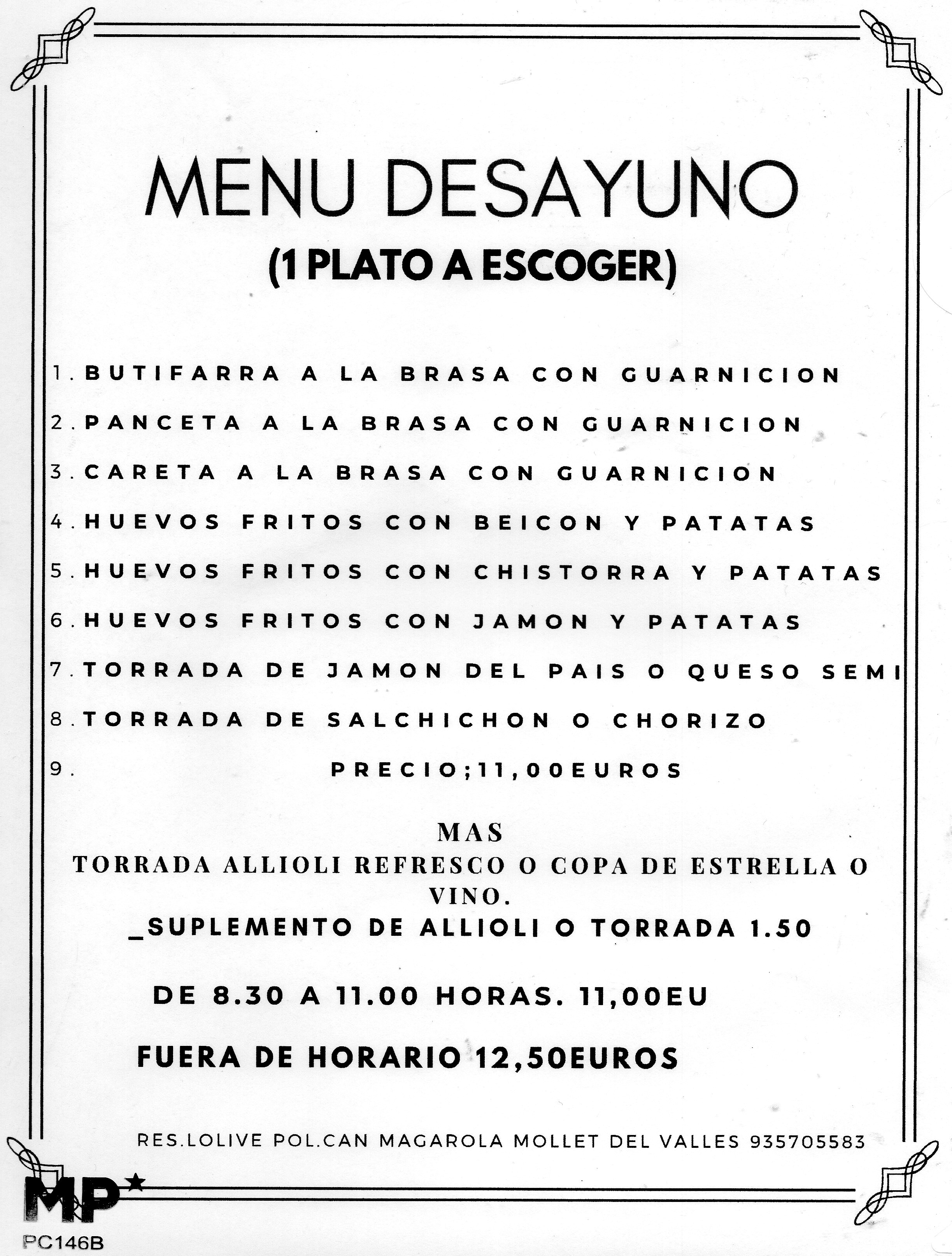 Dicen que hay que desayunar como un rey, por eso, en nuestro restaurante L’Olivé te esperamos todas las mañanas con nuestro menú de desayunos en el polígono Can Magarola de 8.30 a 11. ¡Comienza tu día con energía!